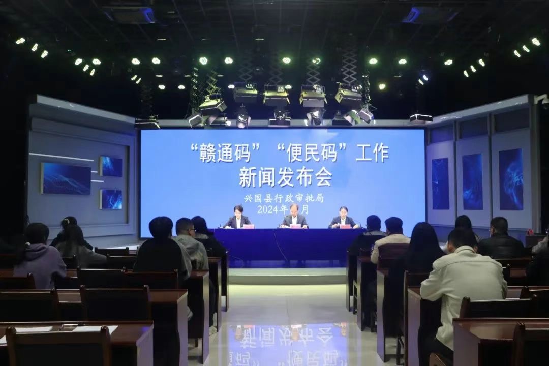 11月20日,興國縣行政審批局召開“贛通碼”“便民碼”工作新聞發(fā)布會,發(fā)布會在縣融媒體中心八樓演播大廳進行。局黨組成員、政數(shù)中心主任謝林洪、副局長潘永平擔(dān)任發(fā)布人,政數(shù)中心副主任王萌主持。