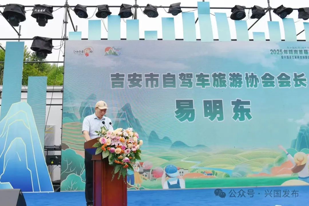 吉安市自駕車旅游協(xié)會會長易明東在致辭中表示,近年來,自駕游已經(jīng)成為民眾出游的主要方式。興國縣不斷完善旅游基礎設施,交通十分便捷,與吉安更是山水相連,私家車開進各個景區(qū)十分便捷。下一步將帶領周邊各省市的自駕游機構(gòu)與興國繼續(xù)深入交流,增強互動,展開更深層次的合作,持續(xù)助力興國文旅高質(zhì)量發(fā)展。