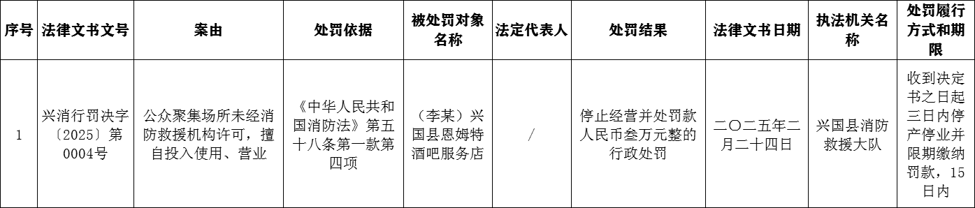 2025年3月消防行政處罰信息公開