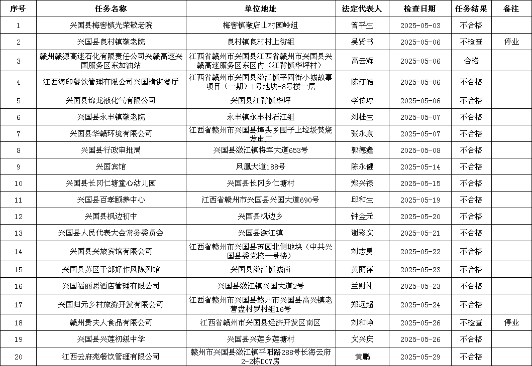 2025年5月份江西省“雙隨機、一公開”消防監管信息系統抽中單位檢查結果公示