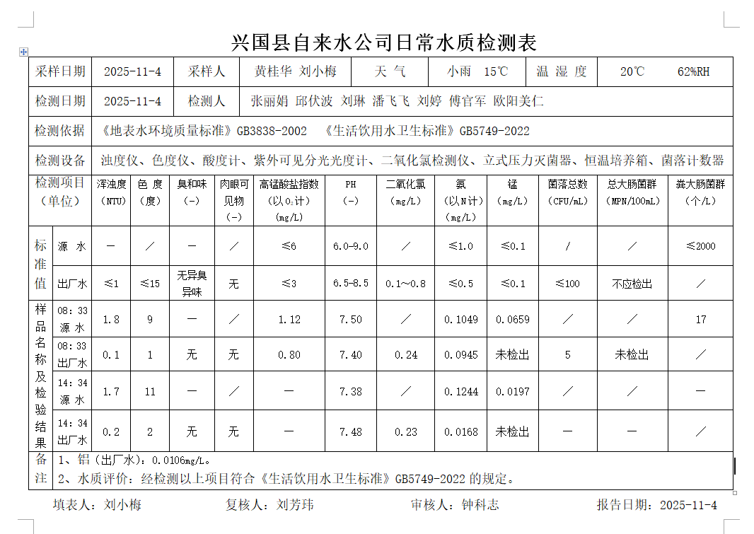 水質(zhì)常規(guī)檢測臺賬(2025年11月4日)