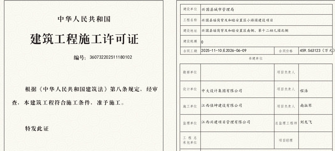 興行審?fù)顿Y字〔2025〕1017號興國縣瑤崗背及和睦安置區(qū)小游園建設(shè)項(xiàng)目施工許可證