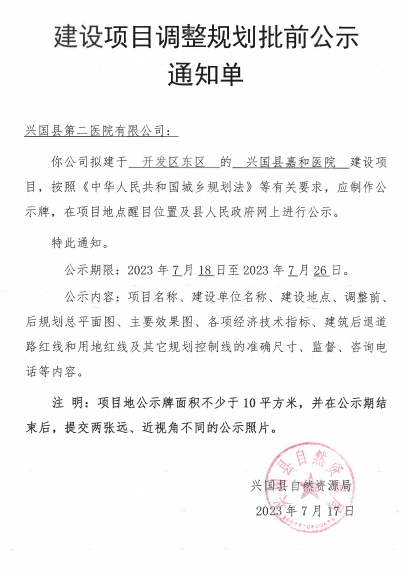 “興國縣嘉和醫院建設項目”規劃建筑設計方案調整公示