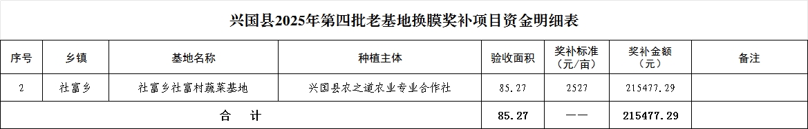 2025年第四批蔬菜基地?fù)Q膜項(xiàng)目已完成鄉(xiāng)村聯(lián)合初驗(yàn)和縣級(jí)復(fù)核。經(jīng)驗(yàn)收,現(xiàn)有1個(gè)蔬菜基地,1個(gè)申報(bào)主體符合獎(jiǎng)補(bǔ)條件,核定總面積85.27畝,擬兌付獎(jiǎng)補(bǔ)資金總額215477.29元。