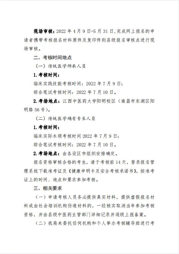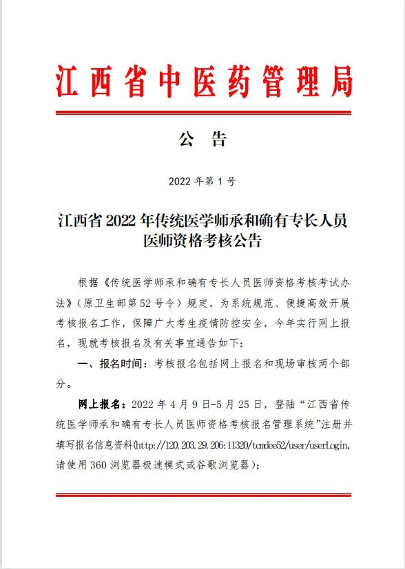 江西省2022年傳統醫學師承和確有專長人員醫師資格考核公告