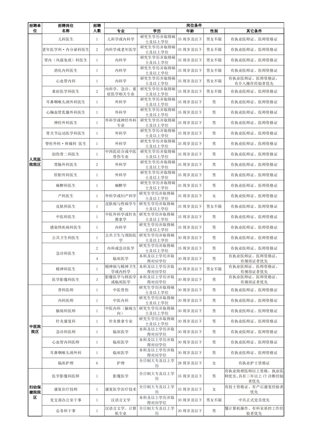 附件1:興國縣衛生健康總院招聘臨聘人員崗位條件匯總表