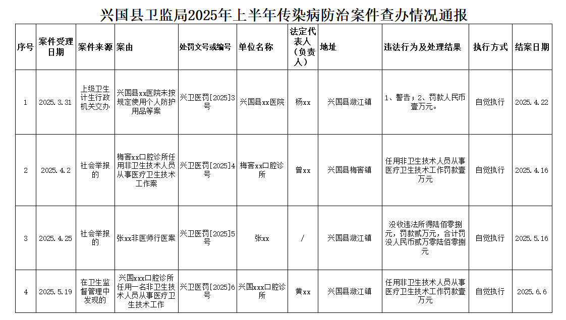 興國縣衛監局2025年上半年傳染病防治案件查辦情況通報