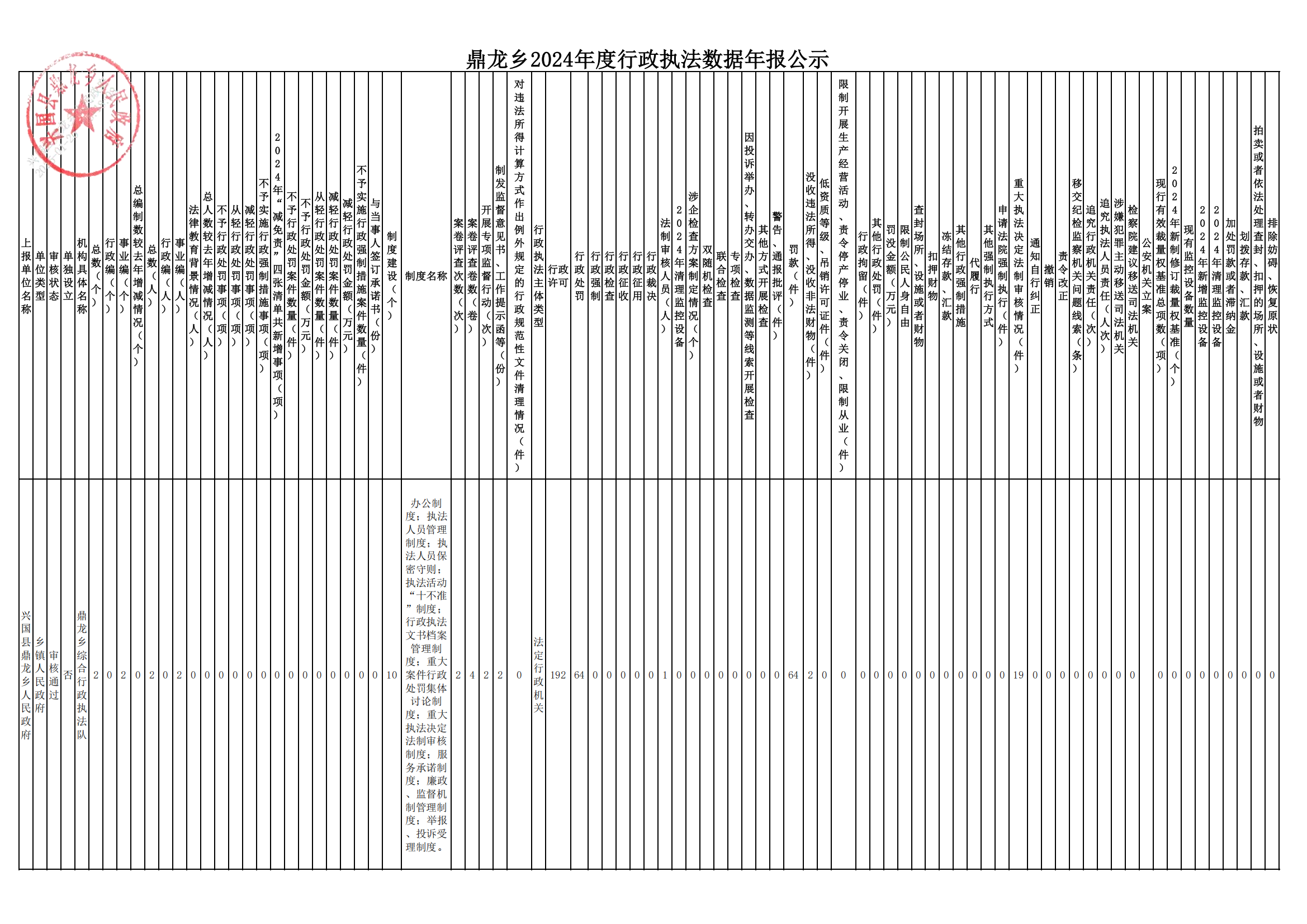 鼎龍鄉(xiāng)2024年度行政執(zhí)法數(shù)據(jù)年報公示