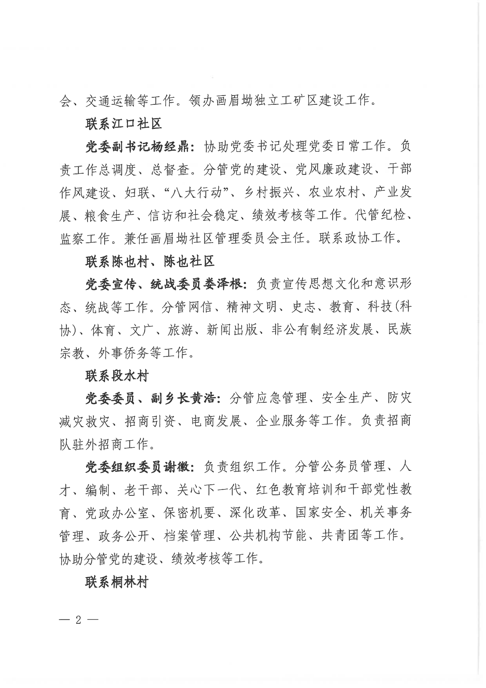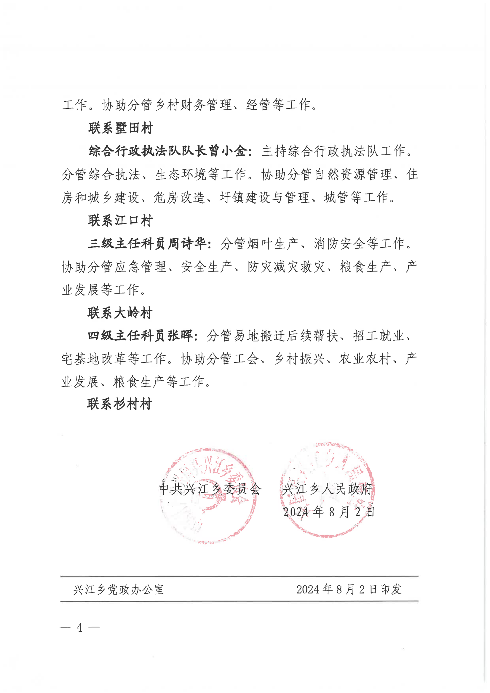 興江鄉(xiāng)關(guān)于調(diào)整鄉(xiāng)領(lǐng)導班子成員工作分工的通知