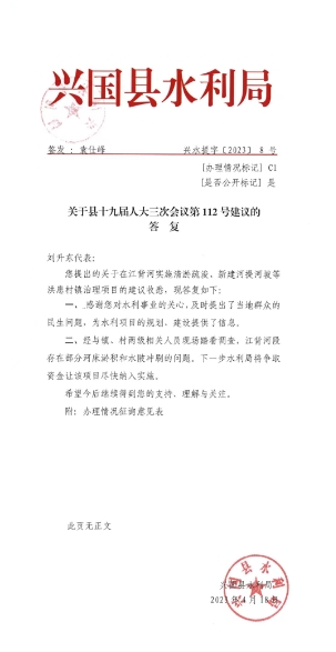 關于縣十九屆人大三次會議第 112 號建議的答復