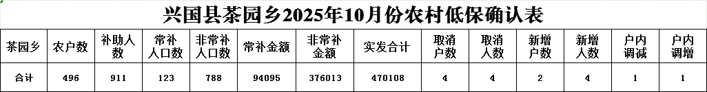 興國縣茶園鄉農村低保2025年10月份撥款明細表