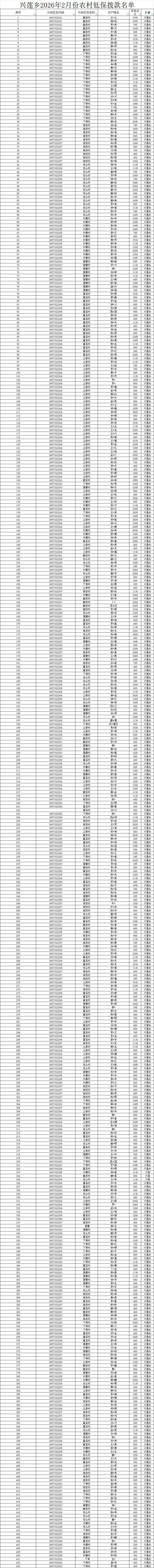【社會救助】興蓮鄉2026年2月份農村低保撥款名單公示