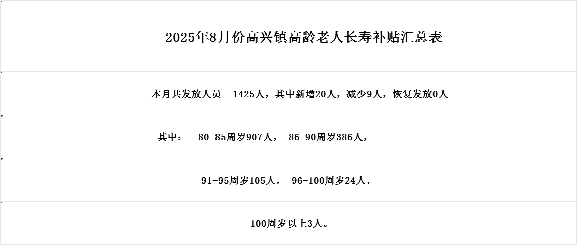 【高齡補貼】2025年8月份高興鎮高齡老人長壽補貼匯總表