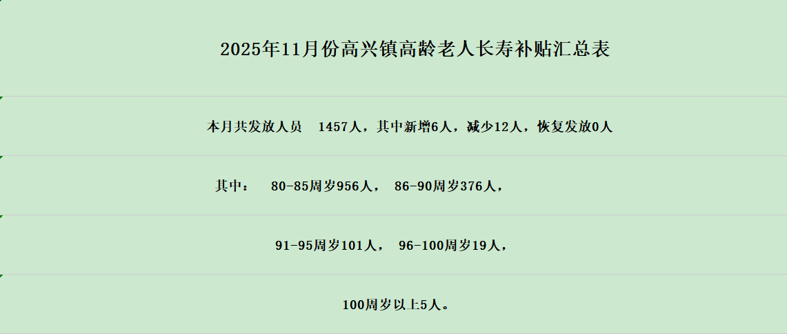 【高齡補(bǔ)貼】2025年11月份高興鎮(zhèn)高齡老人長(zhǎng)壽補(bǔ)貼匯總表