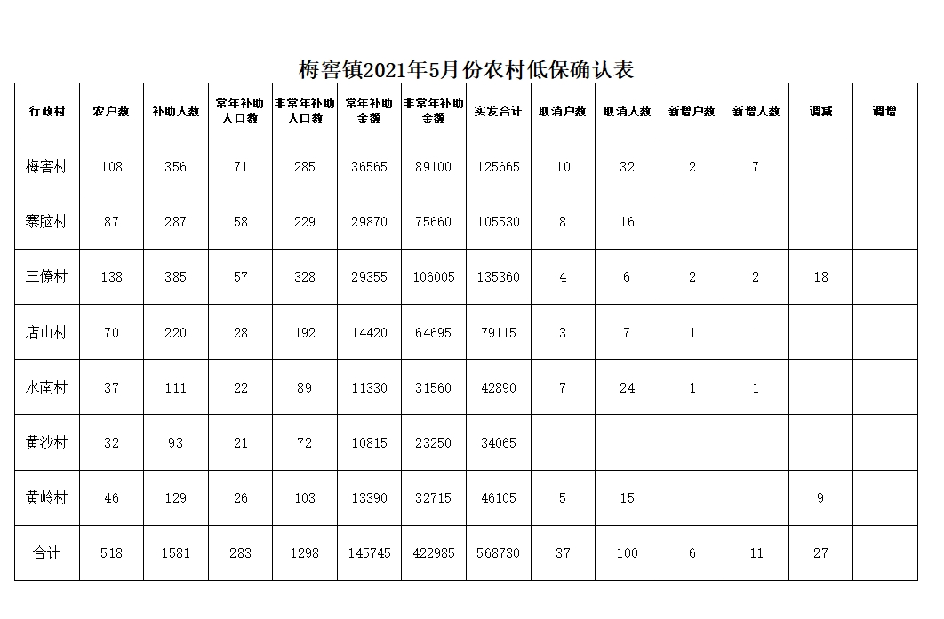 【低保補貼】梅窖鎮(zhèn)2025年5月份農(nóng)村低保發(fā)放匯總表