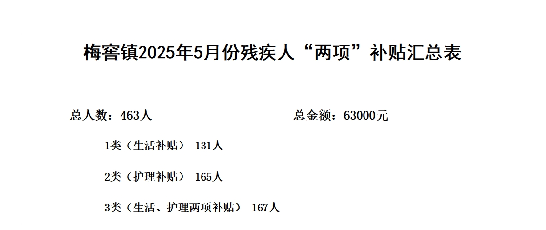 【殘疾人“兩項”補貼】梅窖鎮2025年5月份殘疾人“兩項”補貼情況