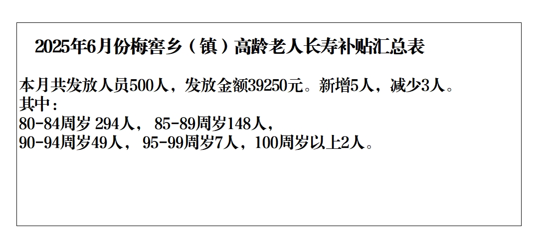 【養老服務】梅窖鎮2025年6月份高齡補貼匯總表