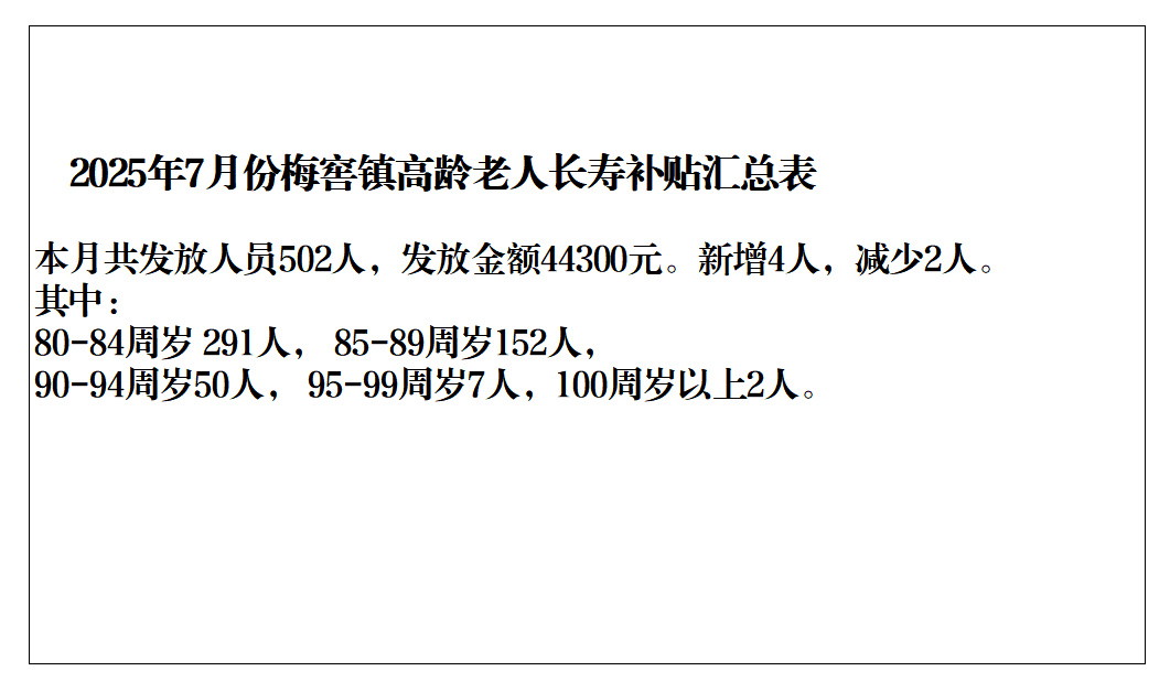 【養老服務】梅窖鎮2025年7月份高齡補貼匯總表