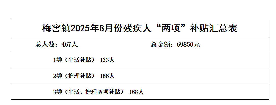 【殘疾人“兩項”補貼】梅窖鎮2025年8月份殘疾人“兩項”補貼情況