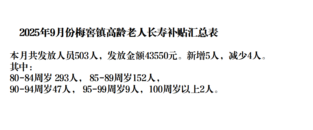【養(yǎng)老服務(wù)】梅窖鎮(zhèn)2025年9月份高齡補(bǔ)貼匯總表