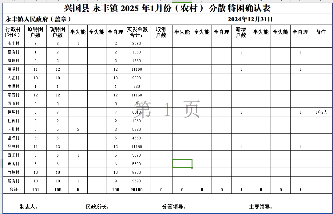 興國縣 永豐鎮 2025 年1月份(農村)分散特內確認表