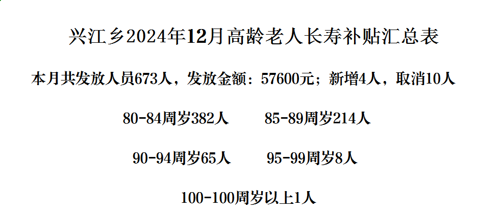【養老服務】興江鄉2024年12月份高齡老人長壽補貼發放公示