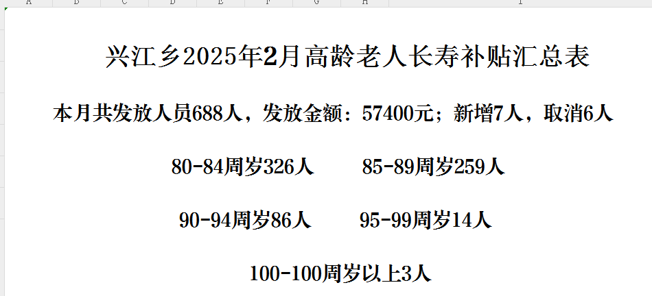 【養(yǎng)老服務(wù)】興江鄉(xiāng)2025年2月份高齡老人長(zhǎng)壽補(bǔ)貼發(fā)放公示