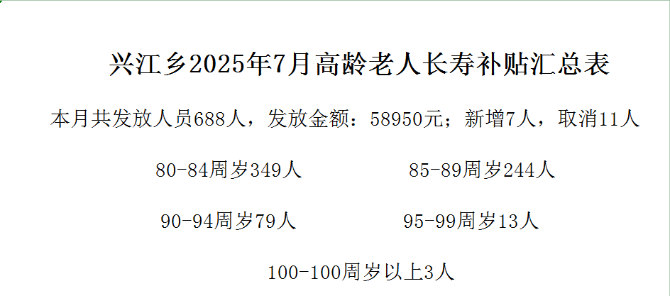 【養老服務】興江鄉2025年7月份高齡老人長壽補貼發放公示