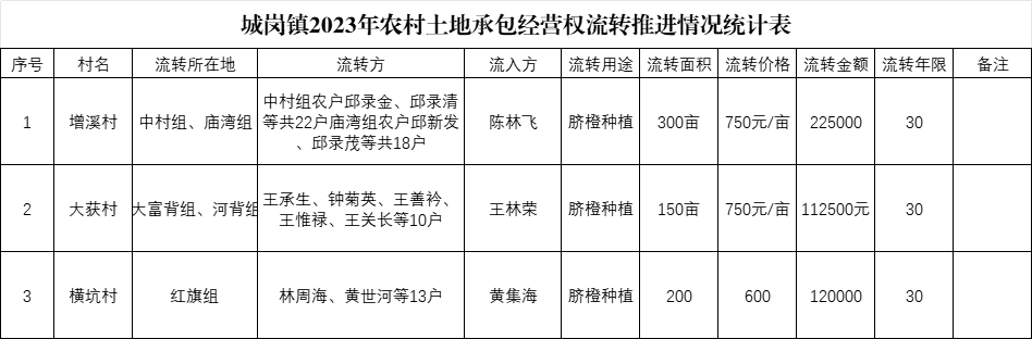 城崗鎮2023年農村土地承包經營權流轉推進情況