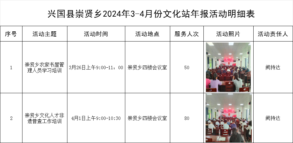 興國縣崇賢鄉(xiāng)2024年3-4月份文化站年報活動明細表