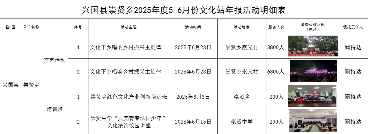 興國縣崇賢鄉2025年度5-6月份文化站年報活動明細表