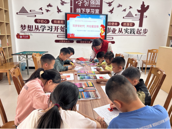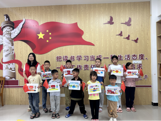 活動開始,志愿者向孩子們講述了“國慶節(jié)的由來”“什么是國慶節(jié)”等內容。孩子們認真聆聽、踴躍回答問題。隨后志愿者便引導和鼓勵孩子們動起小手,發(fā)揮想象,用稚嫩的線條、絢麗的色彩繪出對祖國的美好祝福,表達對祖國的熱愛。