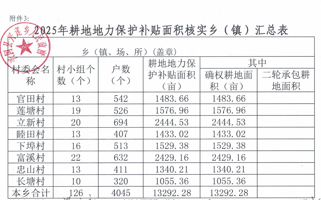 2025年耕地地力補貼面積公示