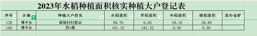 【涉農補貼】2023年樟木鄉稻谷補貼