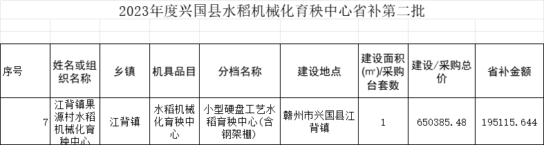 2023年江背鎮省補工廠化育秧中心第二批)