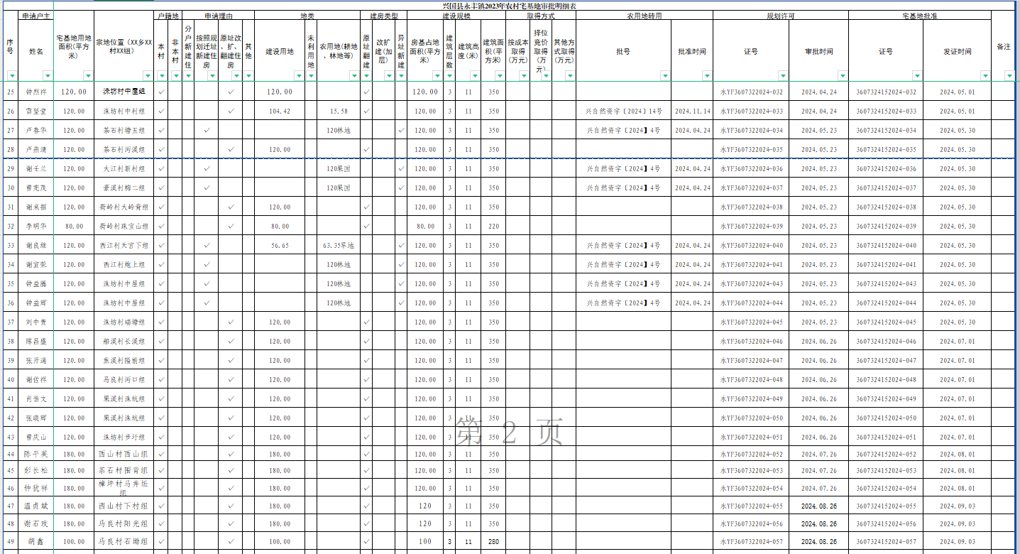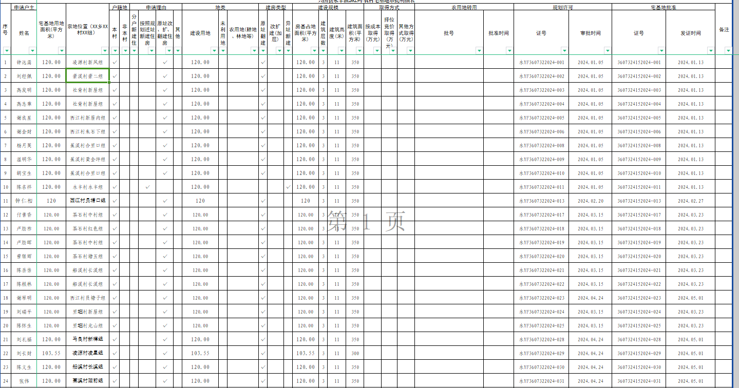 興國縣永豐鎮(zhèn)2024年農(nóng)村宅基地審批明細(xì)表