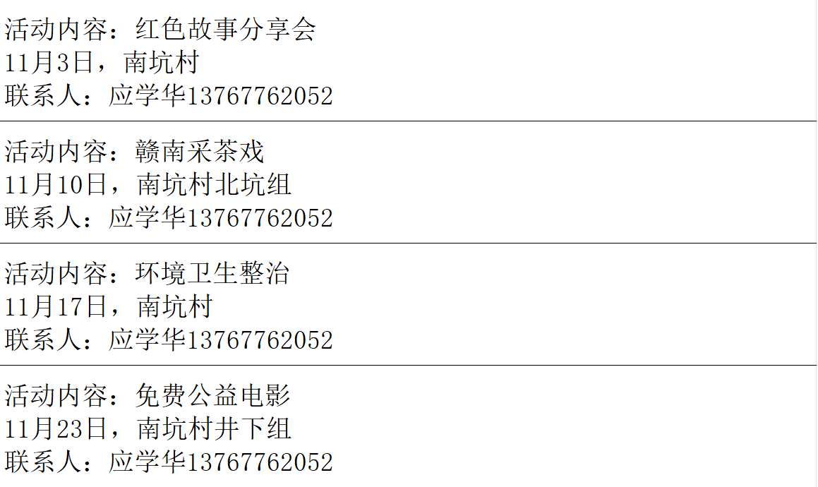 2025年11月份南坑鄉新時代文明實踐所活動公示