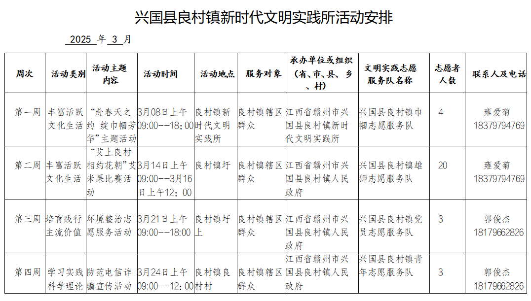 2025年3月份良村鎮(zhèn)新時代文明實踐所活動公示
