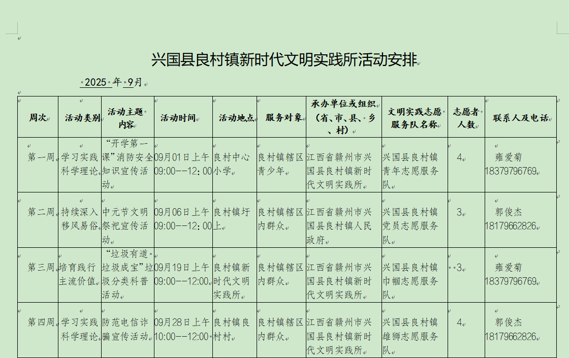 2025年9月份良村鎮新時代文明實踐所活動公示