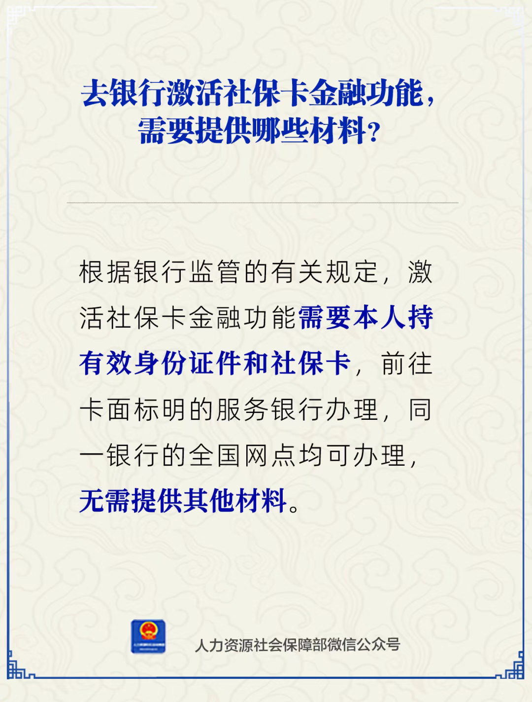 去銀行激活社保卡金融功能,需要提供哪些材料