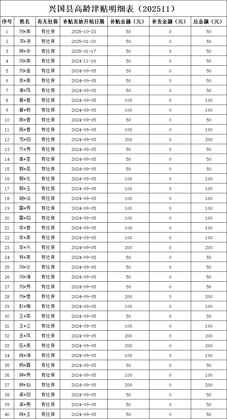 高園村2025年11月高齡現存明細表