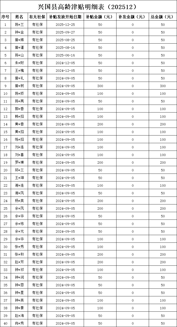 牛逕村2025年12月高齡現(xiàn)存明細表