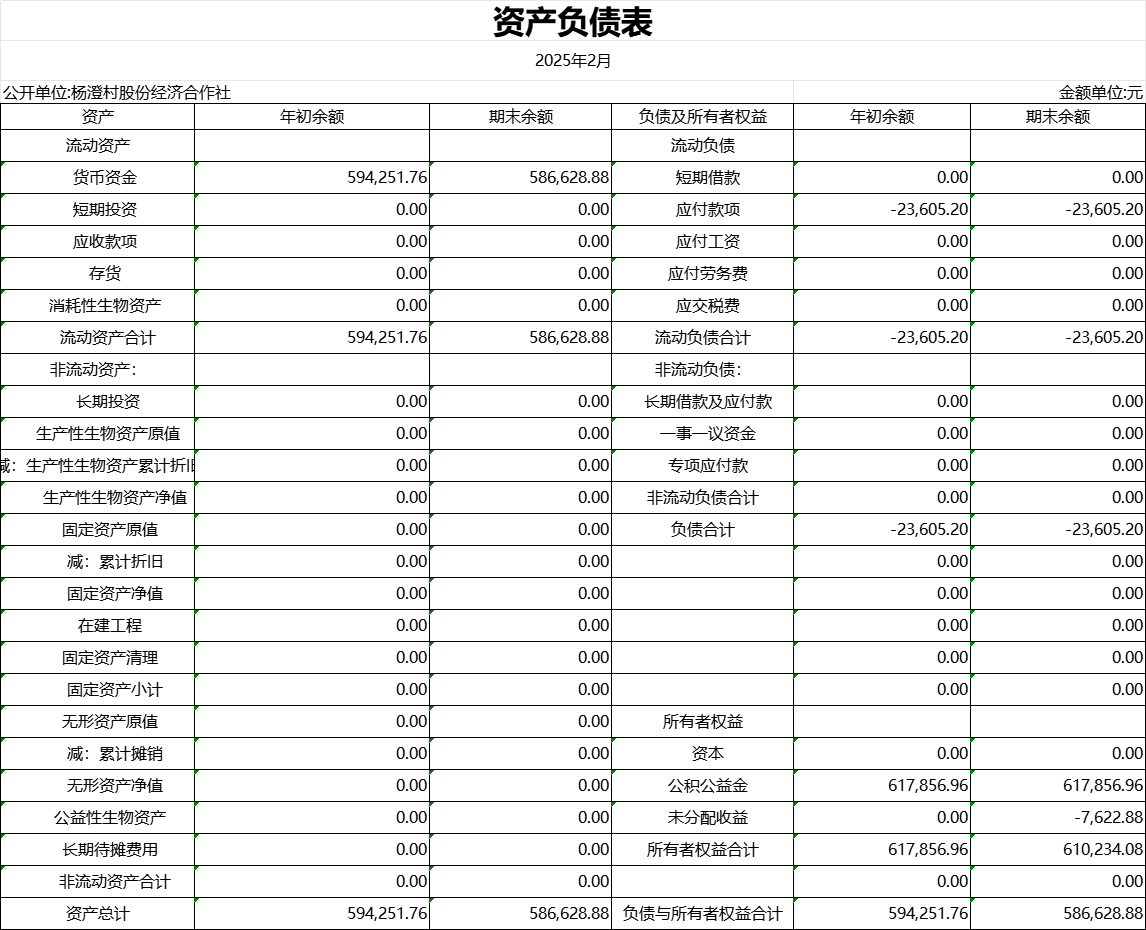 楊澄村股份經(jīng)濟(jì)合作社2025年2月份資產(chǎn)負(fù)債表公示