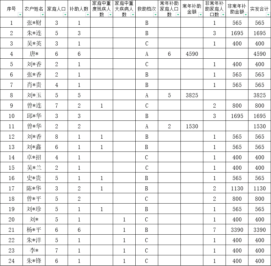 蘭溪村2025年12月份農(nóng)村低保上報名單