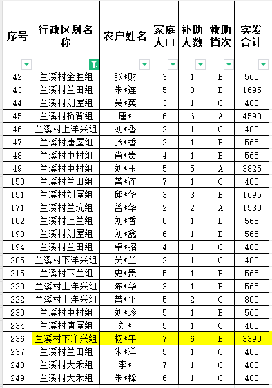 蘭溪村10月份農村低保匯總名單
