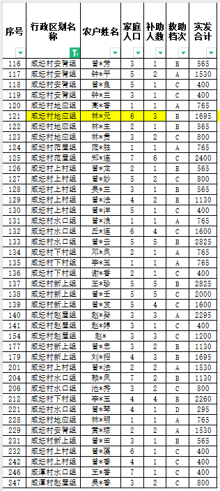 咸潭村10月份農村低保匯總名單