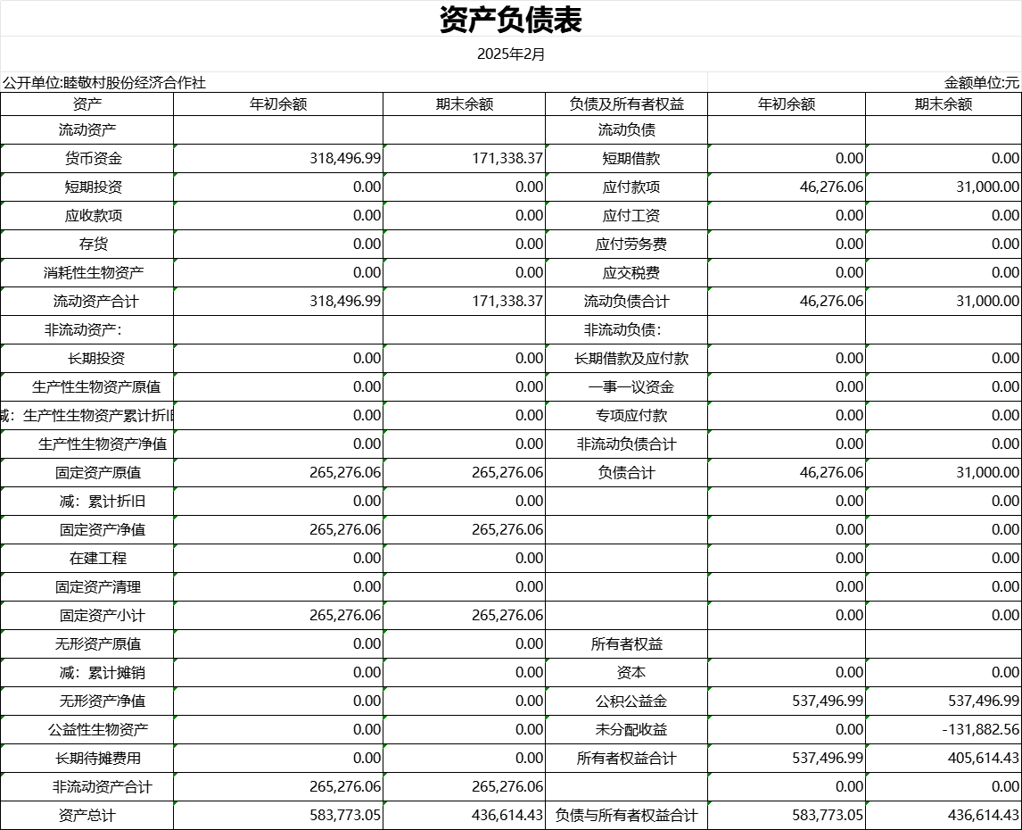 睦敬村股份經濟合作社2025年2月資產負債表公示