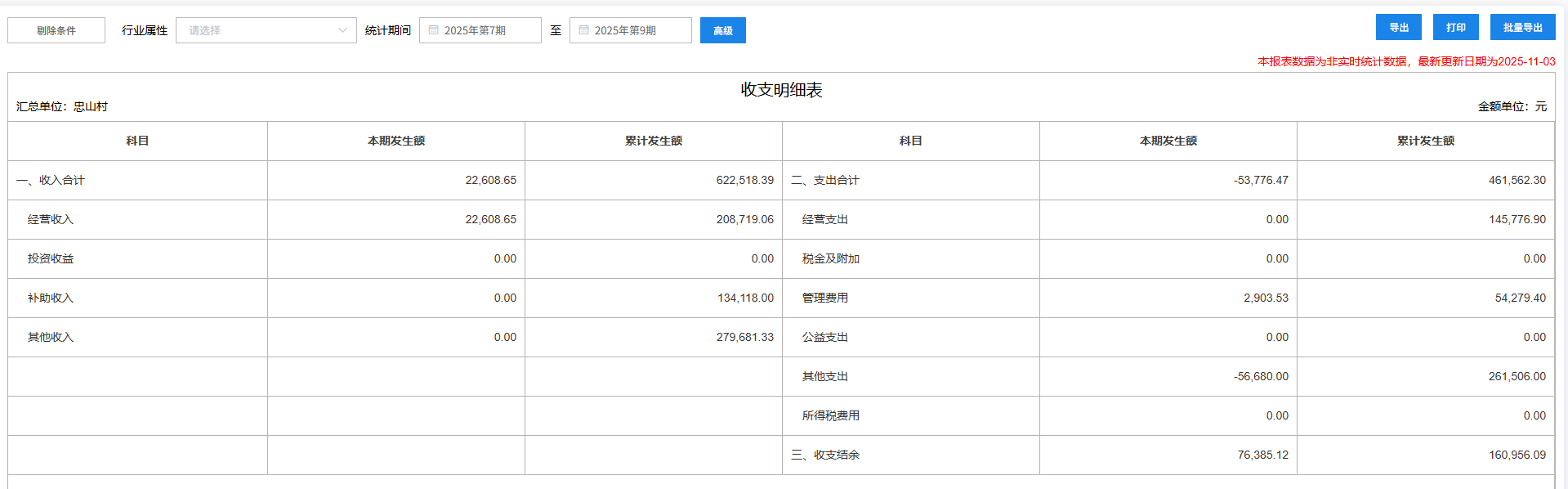 【財務收支】忠山村2025年第三季度收支明細表公示