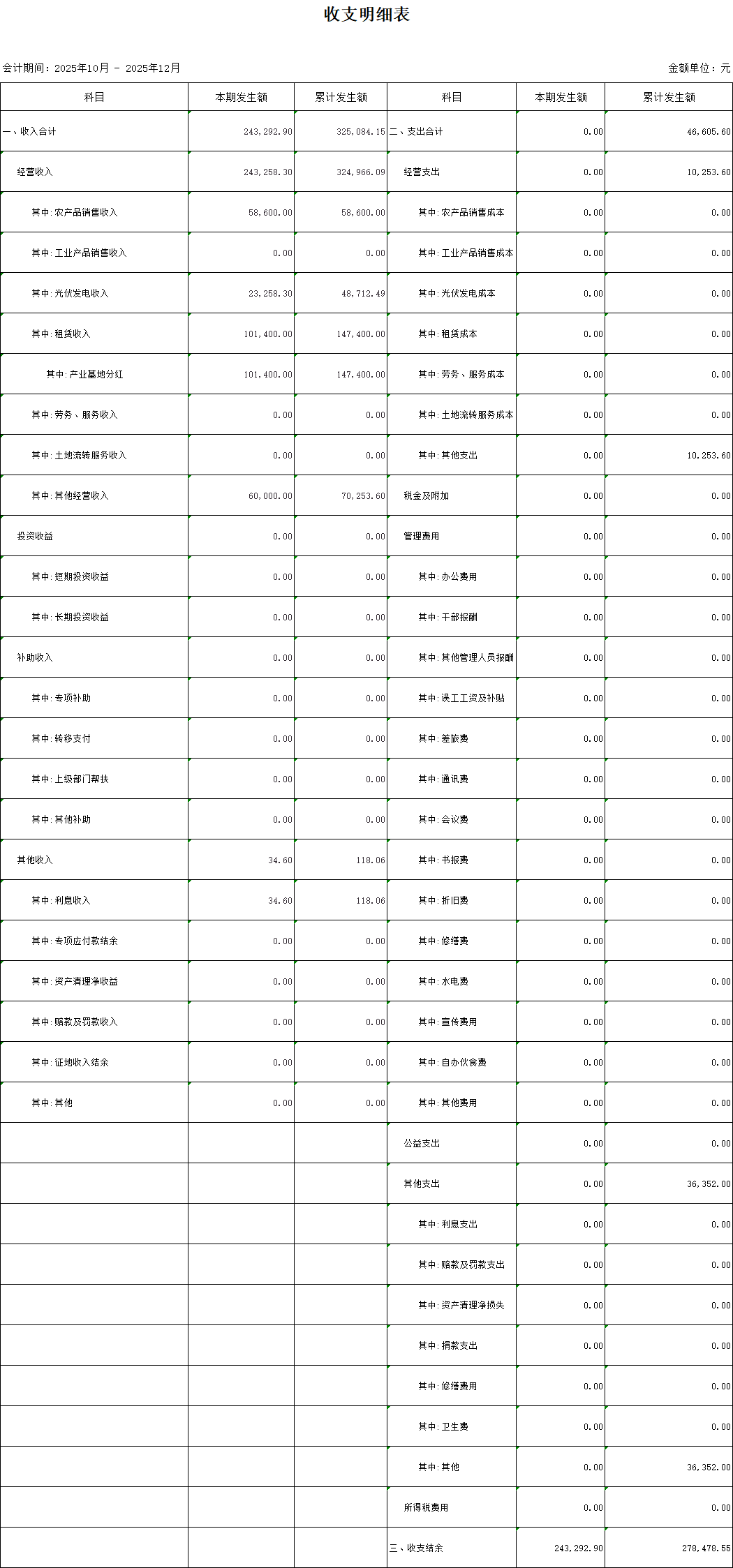 水東村2025年第四季度收支明細(xì)公示