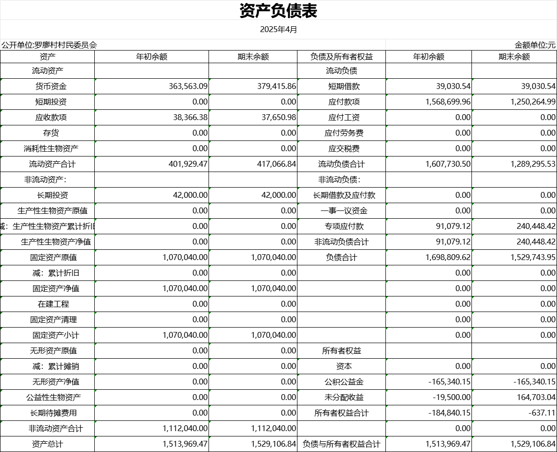 羅廖村2025年4月份資產(chǎn)負(fù)債表公示
